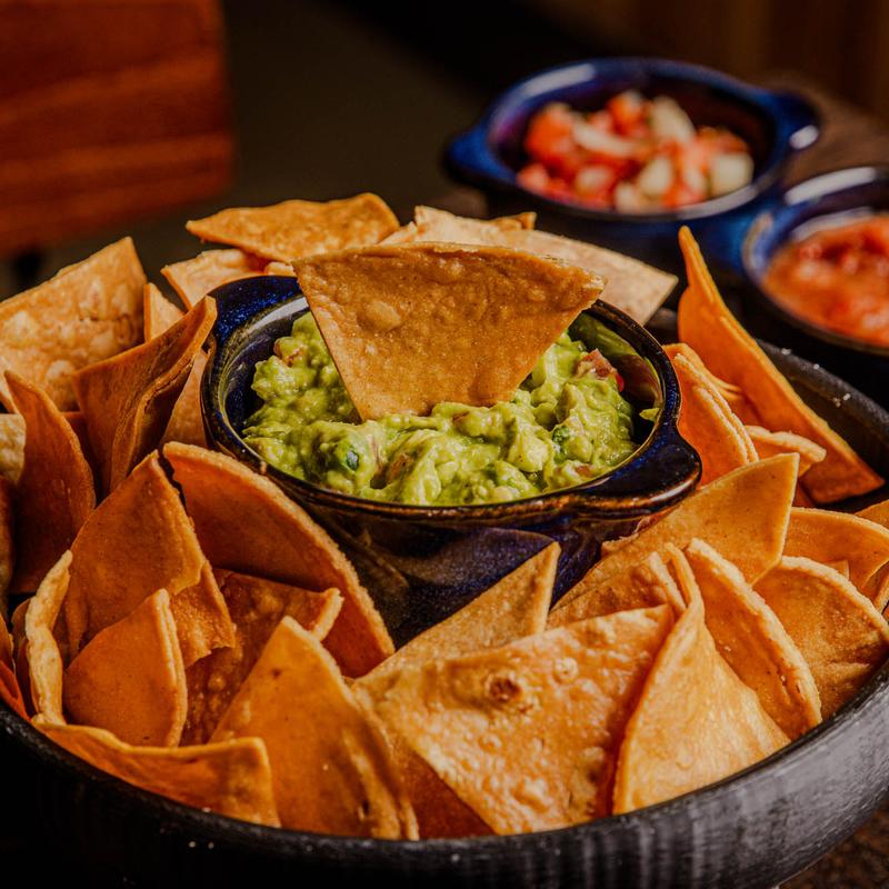 Tortilla chips with your choice of three dips (pico de gallo, chunky salsa, refried beans or guacamole).